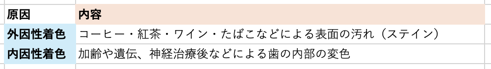 歯の色が黄ばんで見える理由は、大きく分けて2つあります。